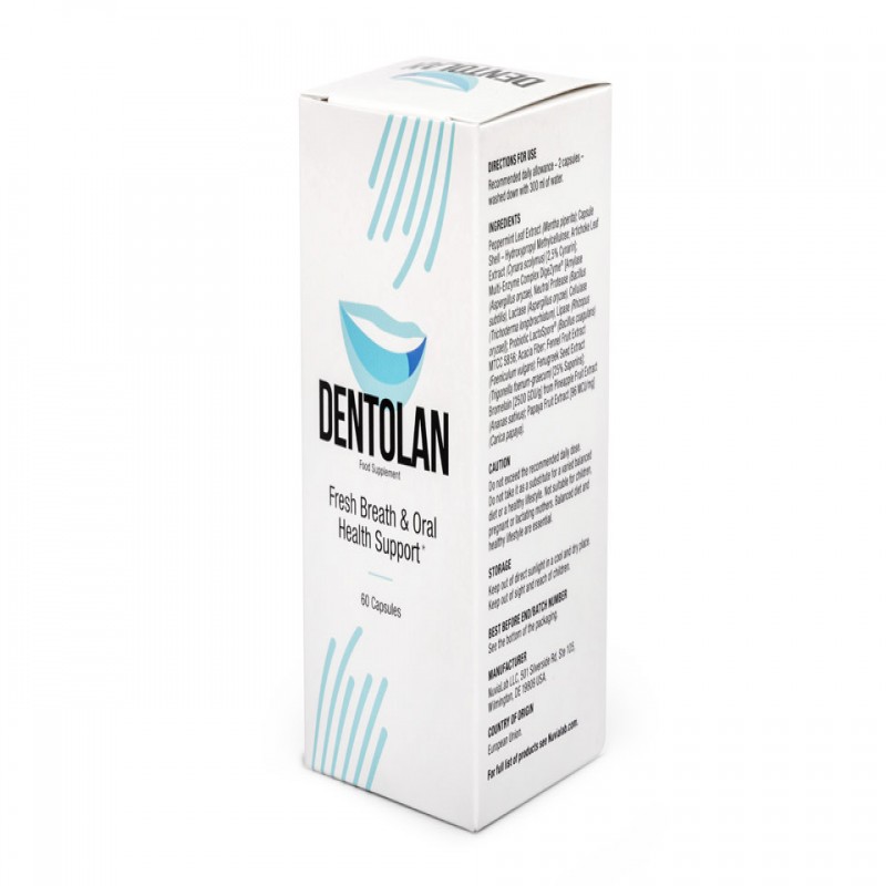 Dentolan es un suplemento alimenticio multi-ingredientes dedicado a personas con mal aliento. El producto tiene un efecto calmante en la garganta y las cuerdas vocales.